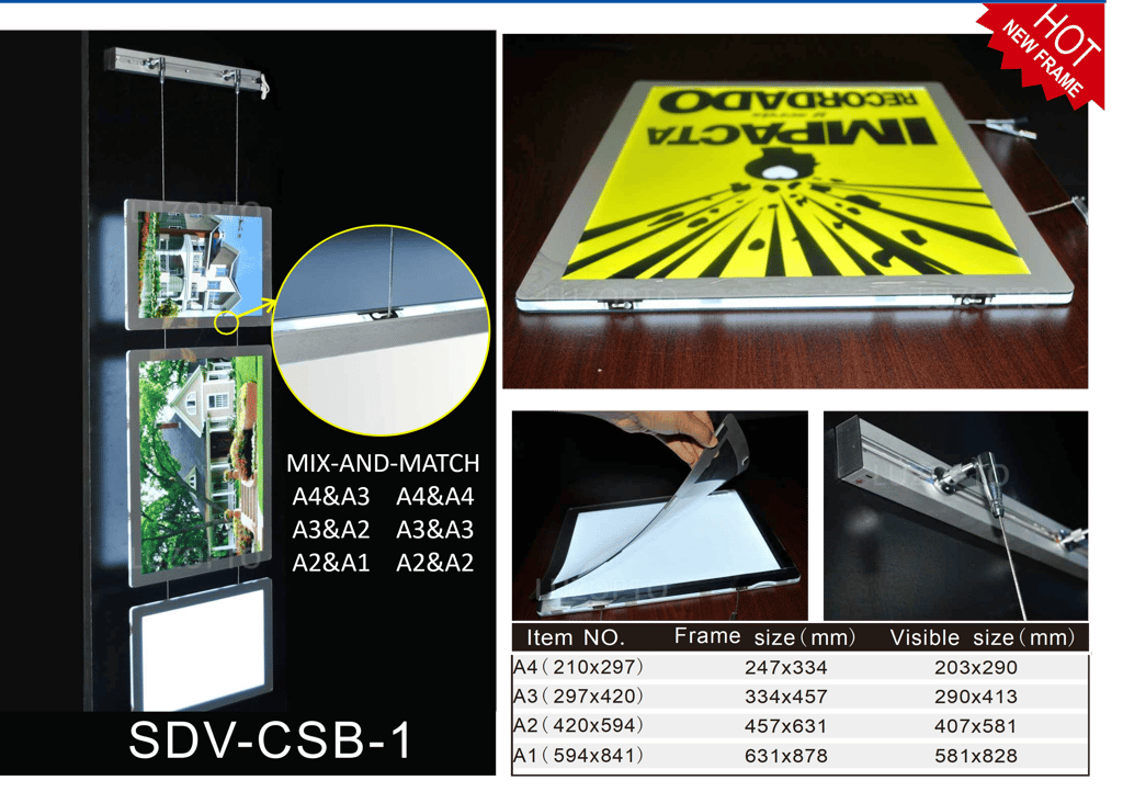 Crystal Acrylic frame LED Light-box Ultra-thin 8-12mm deep.